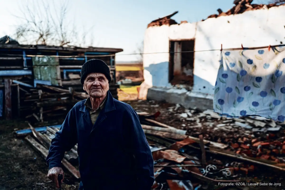 Medewerkers van noodhulporganisatie ZOA bezoeken mensen zoals Viktor, om te kijken hoe ze kunnen helpen bij het repareren van hun huis. “We zijn er voor mensen die alles zijn kwijtgeraakt door een oorlog of een ramp. Ze staan er niet alleen voor in hun nood”, zegt Edwin Visser, directeur programma’s van ZOA.